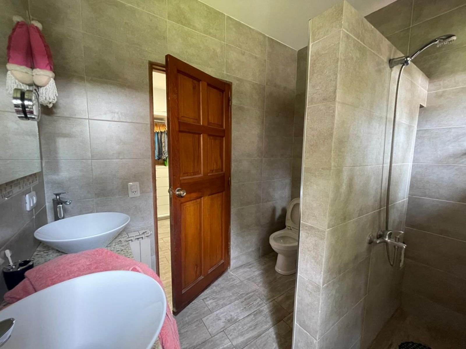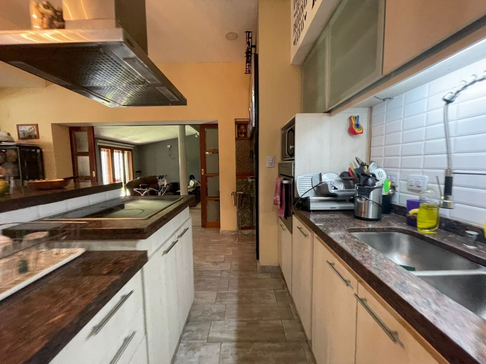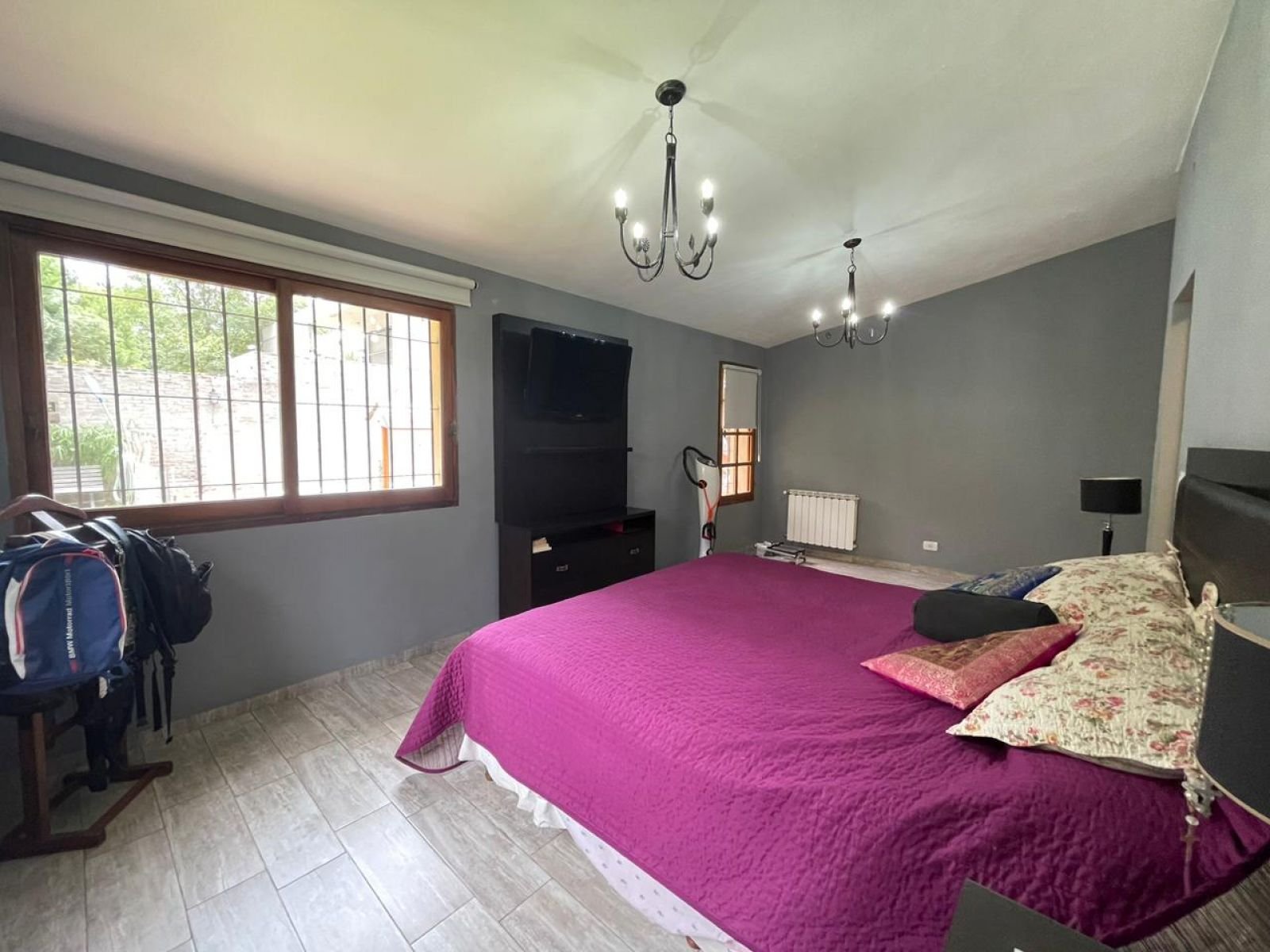 Ubicada a una cuadra del Jockey Club de Rosario y de la rotonda Wilde y Córdoba. Presenta un amplio comedor con ventanales al parque, toilette con ante baño y un hogar a leña que lo separa de la cocina. La misma cuenta con dos frentes y una isla amoblada con alacenas, mesada y bajo mesada. Espacio de horno empotrado con mueble a medida, lugar para microondas, lavavajillas, heladera, cava y anafe con extractor de aire. Además cuenta con una parrilla totalmente cerrada con acero inoxidable. Desde la cocina, por el lado derecho se encuentran las 2 habitaciones con baño en suite y vestidor. Por el lado izquierdo, a través de una puerta de madera corrediza se ingresa al cómodo espacio de living, que cuenta también con ventanal y una puerta que da acceso a la habitación de servicio con salida al patio. También cuenta con espacio de despensa y lavadero con caldera, termotanque y conexión para lavarropas. - Doble cochera techada y bicicletero. - Amplia galería con cerramientos de toldos totalmente equipada con parrillero, mesada de mármol, bacha, bajo mesada y alacenas. - Piscina cercada de 3,50 x 6, con solarium humedo. - Toilette exterior con ante baño - Segundo parrillero con mesada, bacha y barra. - Cuarto de guardado. - Sistema de alarma y cámaras. - Parque con riego artificial. Todos los ambientes cuentan con aire acondicionado y radiadores, además de cortinas de black out automatizadas. La construcción de la casa es de excelente calidad. Los muros son de ladrillo, parte del techo es de chapa con vigas de madera y cielorraso de machimbre, también parte de losa con cielorrasos de yeso.